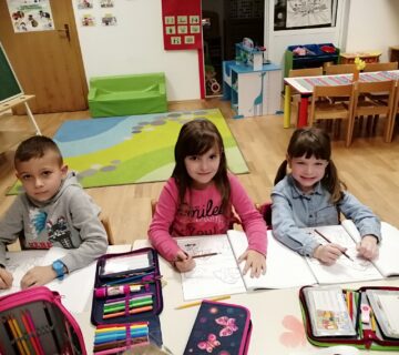 Polaznici programa Predškole Kockice, sve svoje vrijeme ispune maljivim radom, učenjem ali i igrom. Kroz rješavanje radnih listova uče prostorne Saznaj više