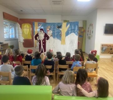 Gusjenice i njihove starije prijatelje Leptiriće 12.12. 2023.posjetilo je kazalište “Šareni svijet” s predstavom zanimljiva i zagonetna naziva “Jeleni, patuljci, Saznaj više