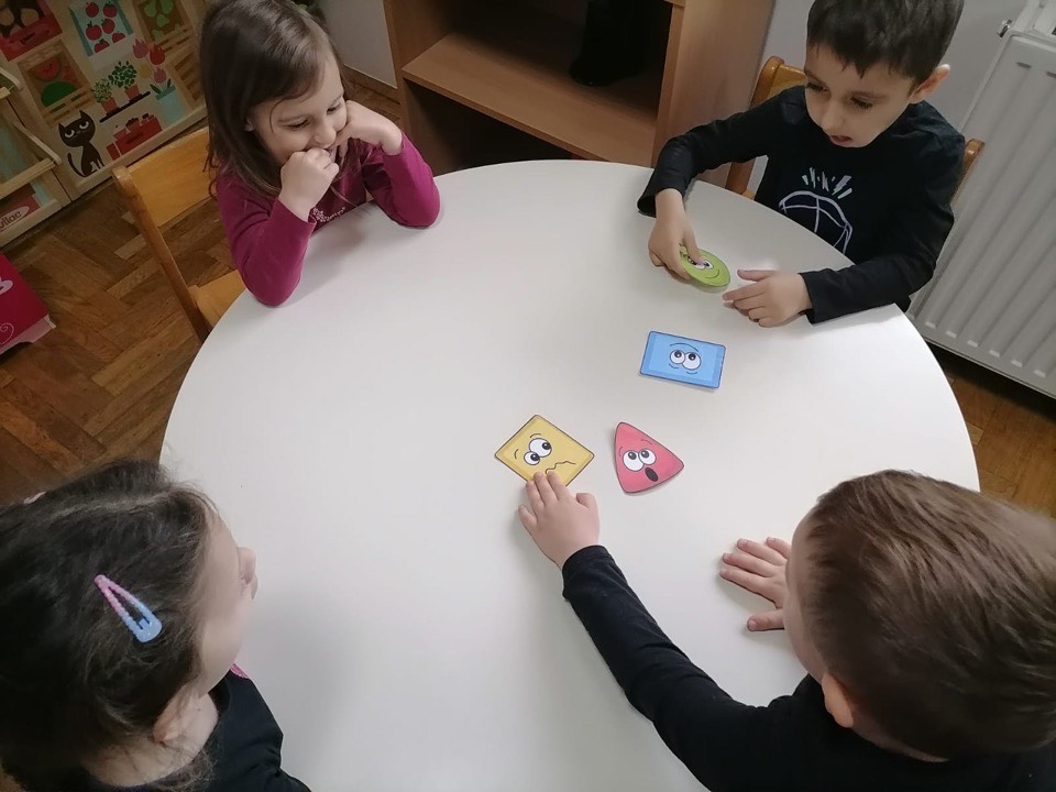 Cilj aktivnosti bio je prepoznavanje i razlikovanje geometrijskih oblika te korištenje odgovarajućih termina, odnosno imenovanje geometrijskih pojmova. Poticali smo spoznavanje geometrijskih oblika i razvijali sposobnost raspoznavanja predmeta iz okoline i uočavanja njihovih oblika te povezivanja s geometrijskim oblicima. Također tijekom raspoznavanja i imenovanja oblika imenovali smo i boje.