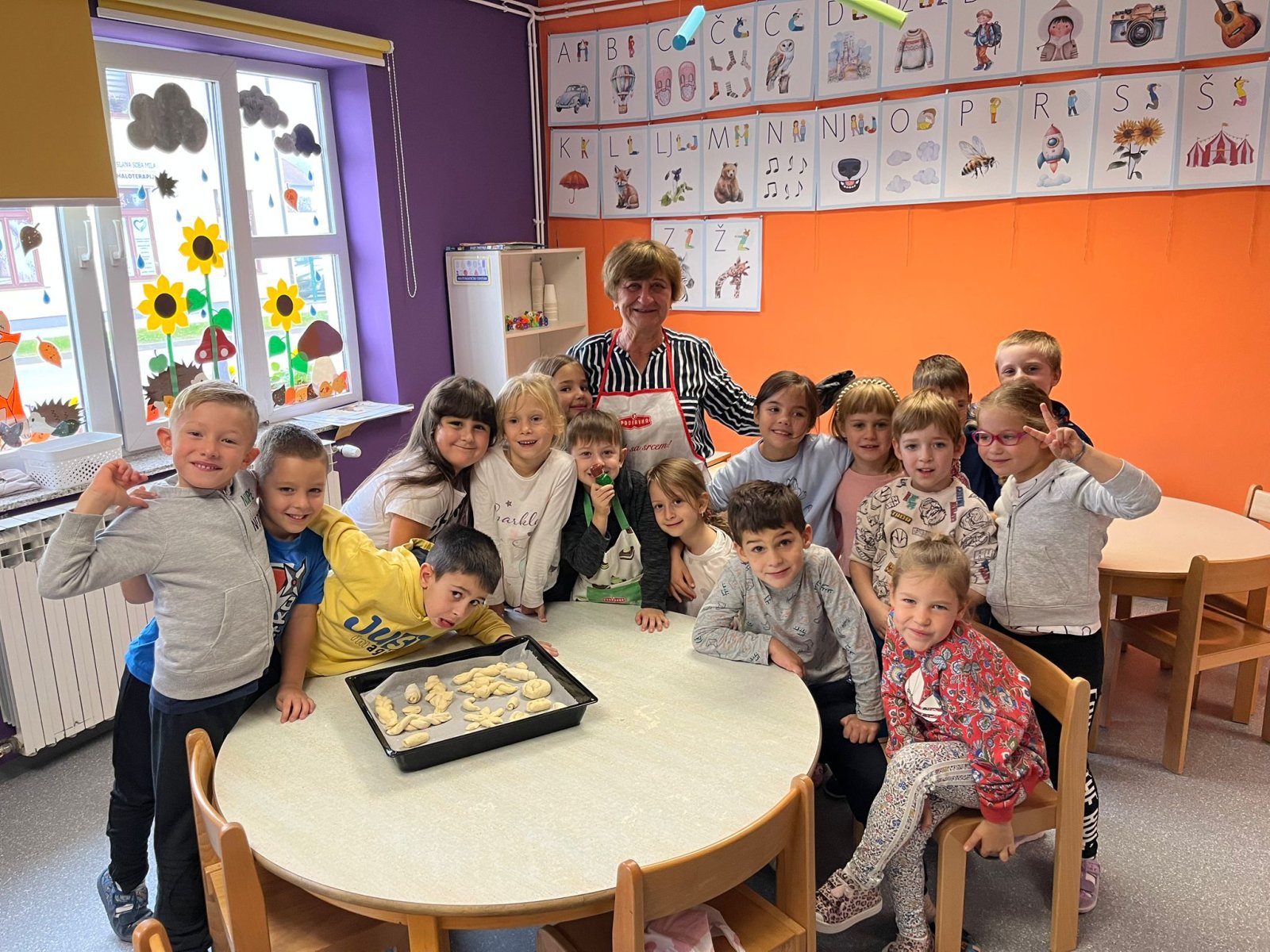 Tijekom tjedna posvećenog Danima kruha djeca su kroz razne aktivnosti upoznala put od zrna pšenice do kruha. Čitali smo slikovnice Pustolovina pšeničnog zrna i Razvikani pijetao, koje su potaknule razgovor o važnosti prirode, rada i zajedništva. Istraživali smo različite vrste brašna, njihove teksture i mirise te promatrali i uspoređivali mljevenje pšenice – kratko, dugo i srednje. Djeca su imala priliku isprobati mljevenje i drugih zrna što ih je potaknulo na razmišljanje i istraživanje. Poseban doživljaj bio je dolazak bake koja nam je pomogla u miješenju peciva.