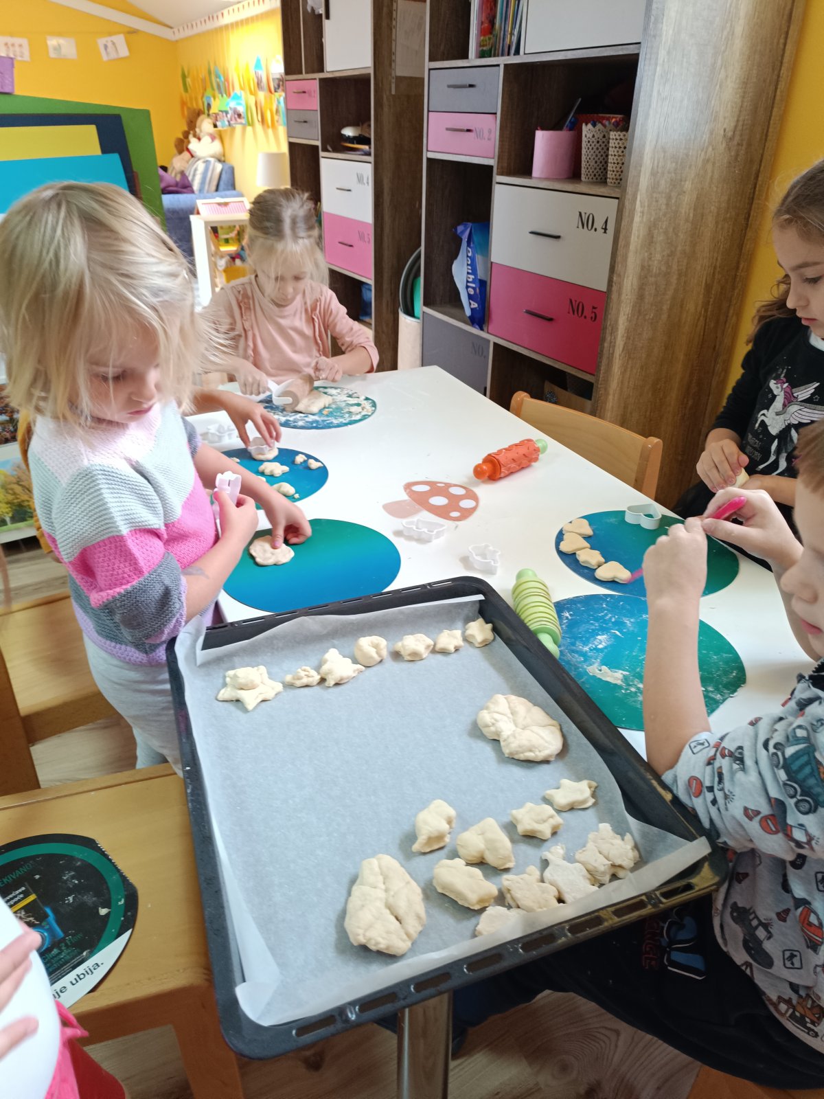 Prošlog su tjedna pčelice provele u obilježavanju dana kruha, jabuka i hrane. Osim što smo se častili sa raznim pekarskim proizvodima djeci smo u centru kuhinje ponudili tijesto da se sami okušaju u izradi raznih slastica, koje smo tada ispekli. Ubrzo se ova aktivnost pretvorila u višesatnu simboličku igru u kojoj su djeca razvijala grubu motoriku te razna osjetila. Obilježili smo i dane jabuka te skrenuli pozornost na važnost zdrave prehrane. Nakon edukativnog videa i razgovora o hrani i raznim namirnicama, djeca su izradila sama svoju prehrambenu piramidu. U slobodno vrijeme djeca su imala ponuđene aktivnosti vezane za teme koje smo obrađivali,a za kraj tjedna odgojiteljice su pripremile djeci igrokaz “Koka i zrno” u kojoj smo svi uživali. Kako nam je bilo i što smo sve izradili pogledajte u našoj fotogaleriji.