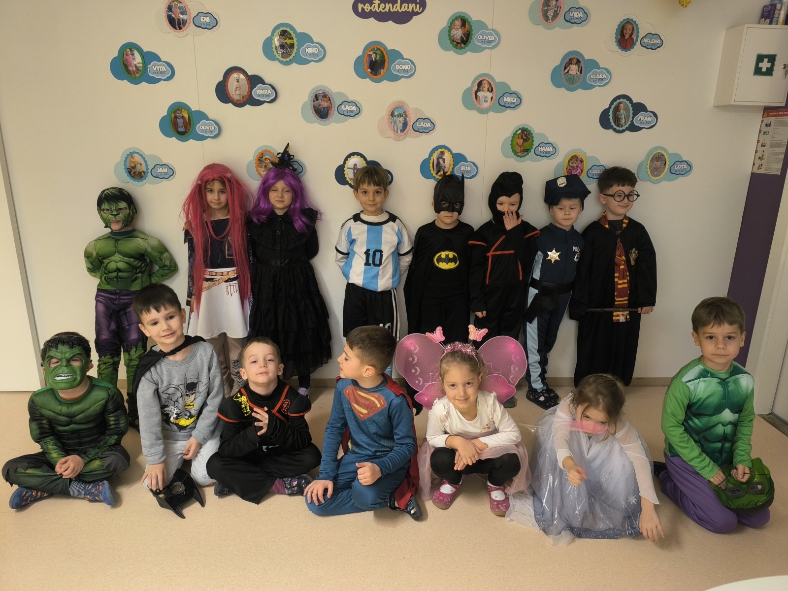 Nakon toga pričali smo o maškarama gdje su djeca opisivala koji lik predstavljaju . Slušali smo priču o malom mišu koji traži svog prijatelja te su uz štapne lutkice djeca samostalno glumila i izgovarala jednostavnu rečenicu koja se u priči ponavlja. Uz igru pokvarenog telefona izgovarali su riječi o stvarima koje je mišić pronalazio prije pronalaska svog prijatelja .Uz svaku temu djeca su imala i radni listić prilagođen njihovom uzrastu. Kako je bilo pogledajte u fotogaleriji.