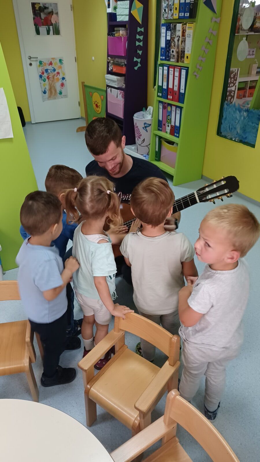 U sklopu projekta “Glazba i pokret” skupinu “Ribice” su posjetili učenici Umjetničke škole Fortunat Pintarić (među njima i bivši polaznici našeg vrtića M.O.P. , N.Š., U.K.) zajedno sa prof. klavira Majom Petrović i prof. gitare Matijom Kučićom.