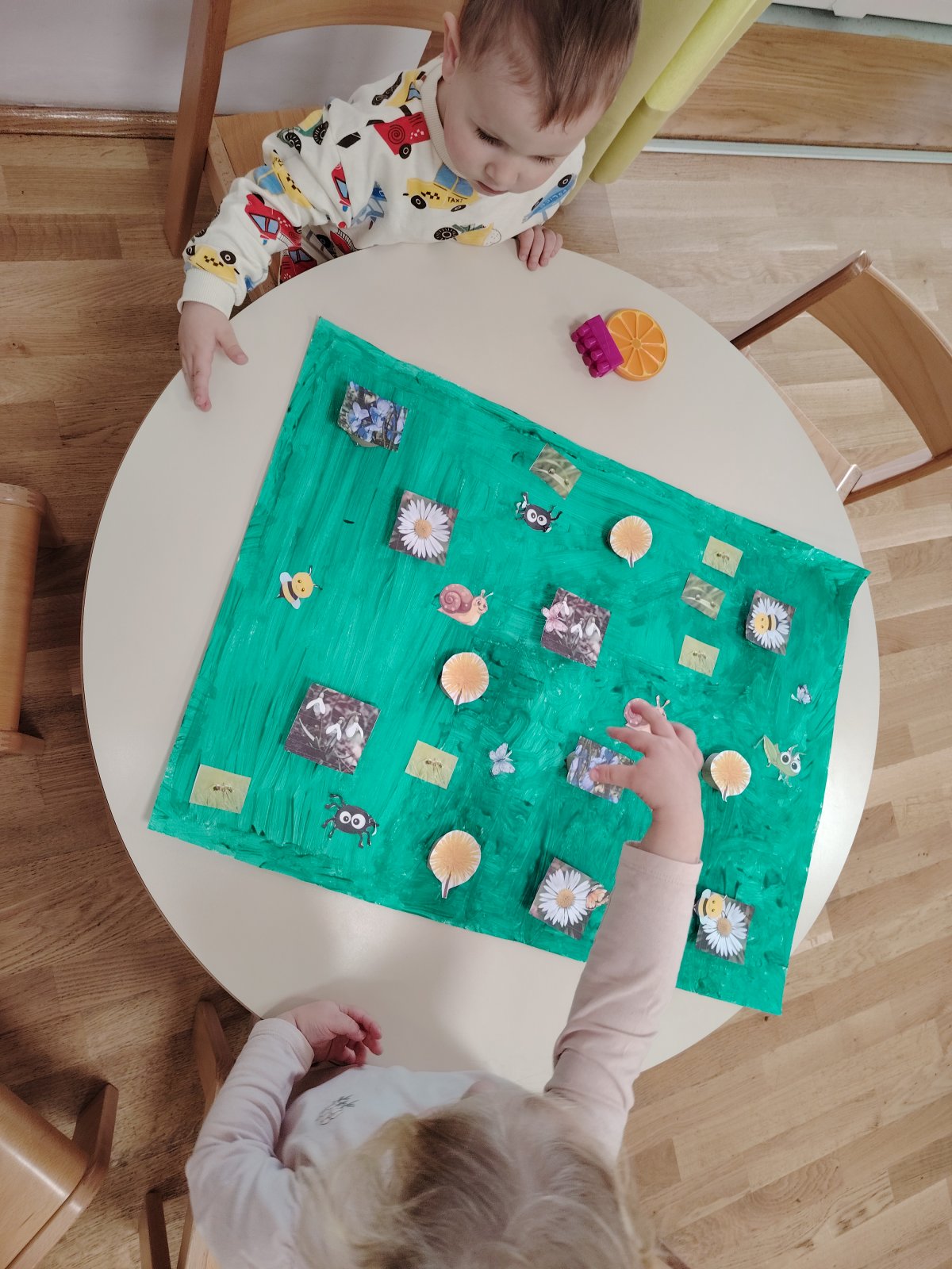Zajedno smo razgovarali o tome tko živi na livadi. Djeca su prepoznavala i imenovala pčele, leptire, bubamare i skakavce, oponašala njihove pokrete i zvukove te se kroz igru kretala poput malih životinja.