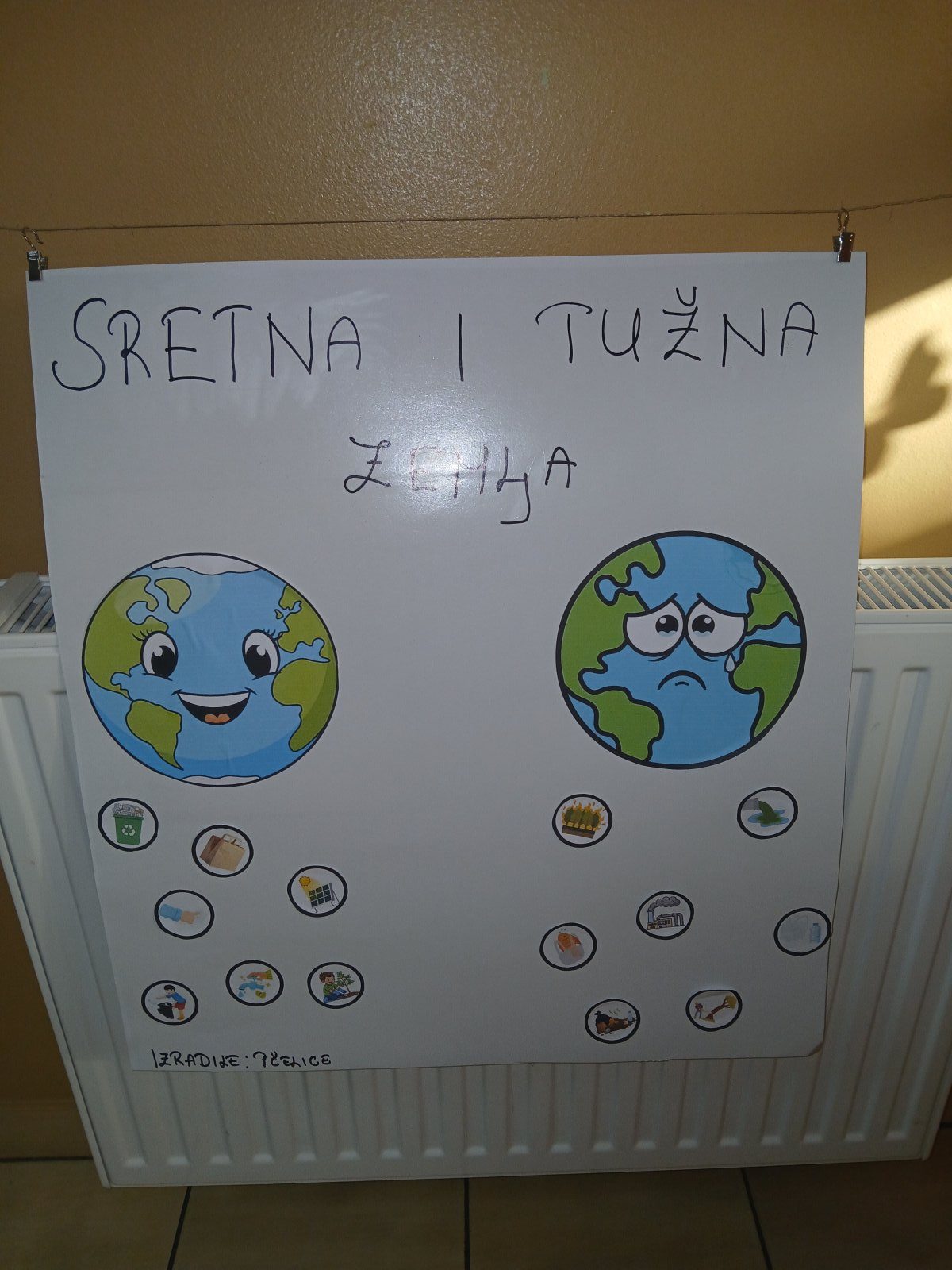 Tijekom tjedna provodili smo razne likovne aktivnosti. Djeca su izrađivala planet Zemlju koristeći bojice, a posebno ih je razveselila izrada plakata „Sretna i tužna Zemlja“, kroz koji su osvijestila što naš planet čini sretnim, a što ga onečišćuje i ugrožava.