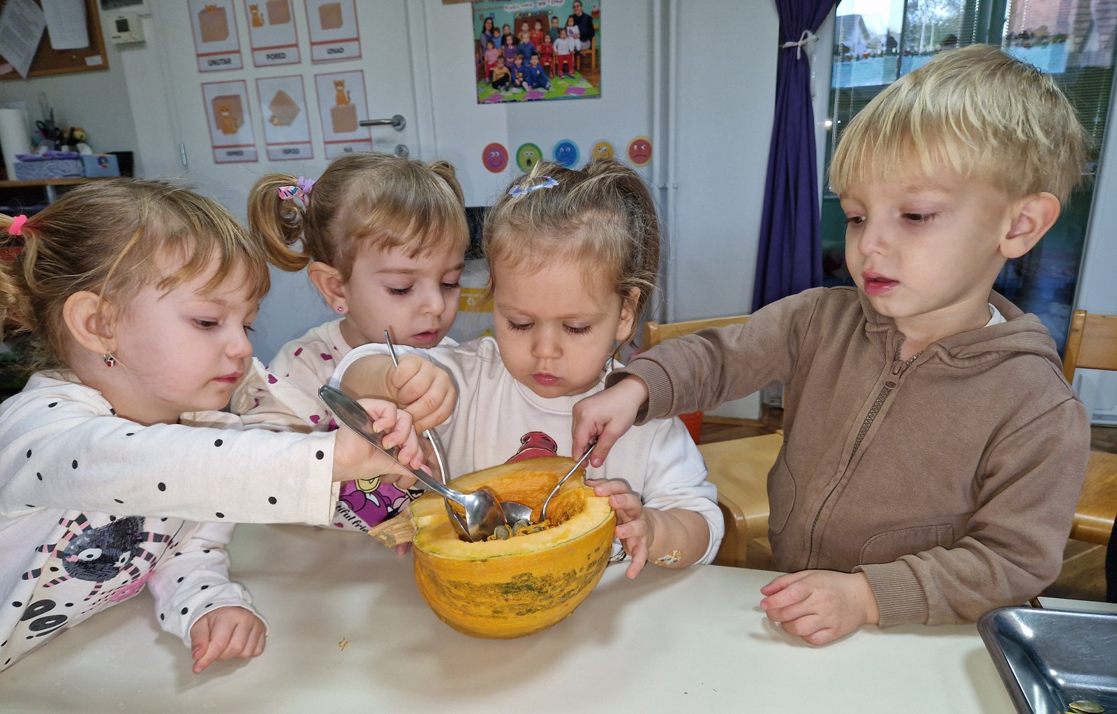 Aktivnost koja je obilježila tjedan i izazvala velik i dugotrajan interes je bila istraživanje unutrašnjosti bundeve. Djeca su žlicom dubila unutrašnjost bundeve i prstićima vadila koštice te tako vježbala finu motoriku.