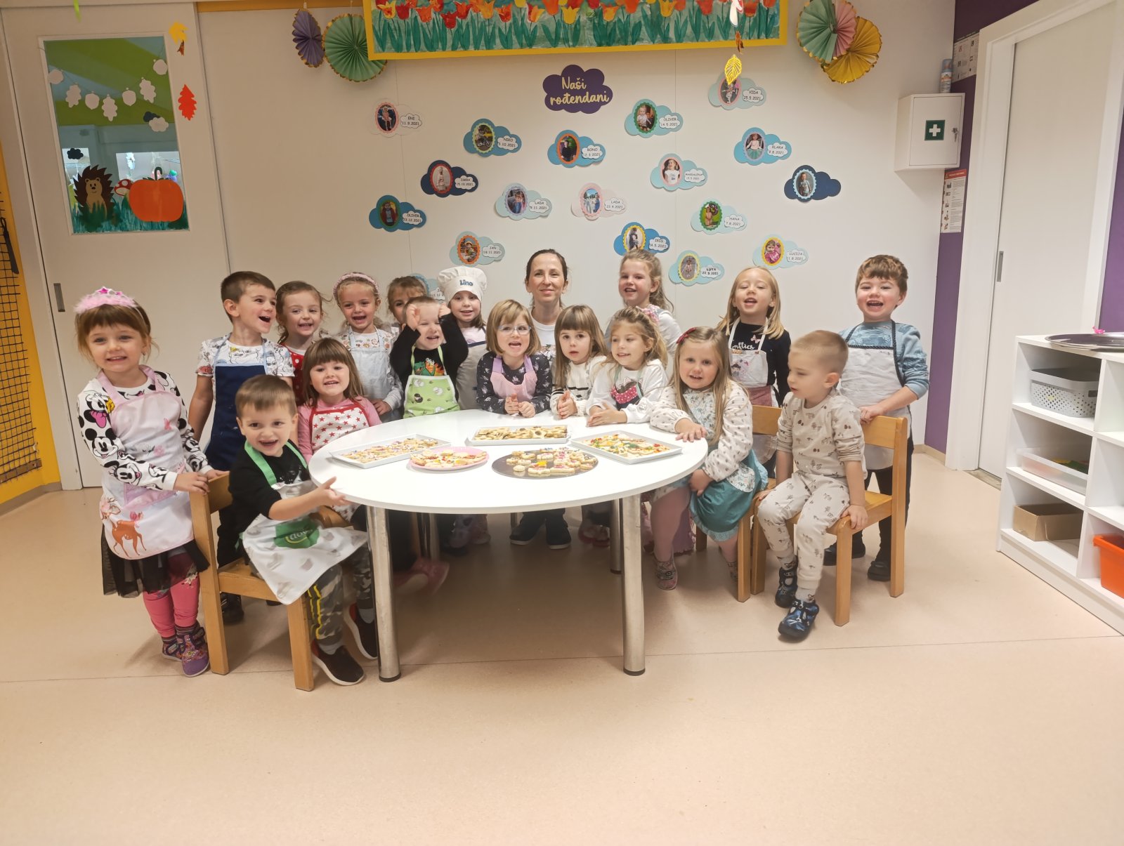 U petak 17. 10. skupinu Oblačići posjetila je Klarina mama Zvonkica koja je pripremila sve sastojke za izradu keksi, a djeca su pomagala u miješenju tijesta i izradi keksića uz pomoć modlica. Svatko je napravio po nekoliko keksi, a kada su se keksi ispekli djeca su ih ukrašavala s glazurom od šećera u prahu i različitim šarenim i čokoladnim mrvicama te bojama. Mama je donijela ispečena zvjezdice koje su djeca mazala s lino ladom i pekmezom od šljiva.