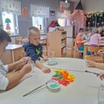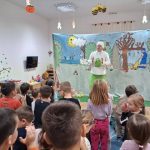 Temu smo započeli razgibavanjem uz pjesme s pokretima „Zeko hop“ i „Šapice nam zeko daj“. Potom, poslušali smo priču „Zečić Zdravko i polje kupusa“ koja nas je poučila kako je važno biti iskren i govoriti istinu te kako ni u čemu nije dobro pretjerivati. Izradili smo zajedničke likovne radove kupusa dvjema tehnikama, jednog od kolaž papira te drugog aplicirajući vodene boje na bazu od uvijenih salveta. Djeca su i vizualizirala kako izgleda presjek kupusa, promatrali smo njegovu unutrašnjost, mirisali ga, kušali. Zaključili smo da je izvana zelen, a iznutra bijel i žućkast, potom da ima jak i neobičan miris te da ima slatkasti okus. Osmislili smo igru „Nahrani zeca kupusom“ kojem su djeca dala ime na temelju odslušane priče – zeko Zdravko.