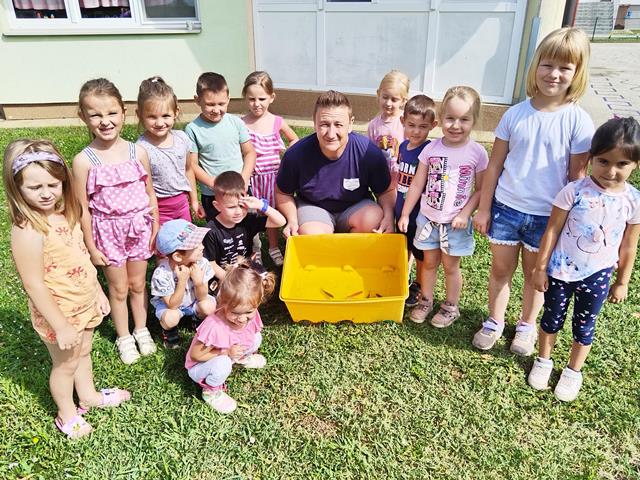 Ljeto nas podsjeća na sunce, more, morske stanovnike, plodove… Aktivnost smo započeli razgovorom o morskim stanovnicima, njihovim karakteristikama i posebnostima. Uz stihove Hej ribo ribice, slikovnicu Riba duginih boja, animirani film Nemo, priči Priča o tri ribe naučili smo puno toga o tim divnim stanovnicima vode. U likovnoj aktivnosti slikali smo morsko dno, izradili plakat- životinje u moru i slikali ribe. Najviše vremena provodili smo ipak na svježem zraku i u vrtu. Počeli su nam rasti plodovi našega vrta. Jako se veselimo prvim ubranim. Povodom teme u posjet nam je stigao i predsjednik športskog ribolovnog kluba Ivan Generalić Sigetec koji nam je pokazao kakve sve vrste riba ima kod nas u vodama. Pogledajte slike.