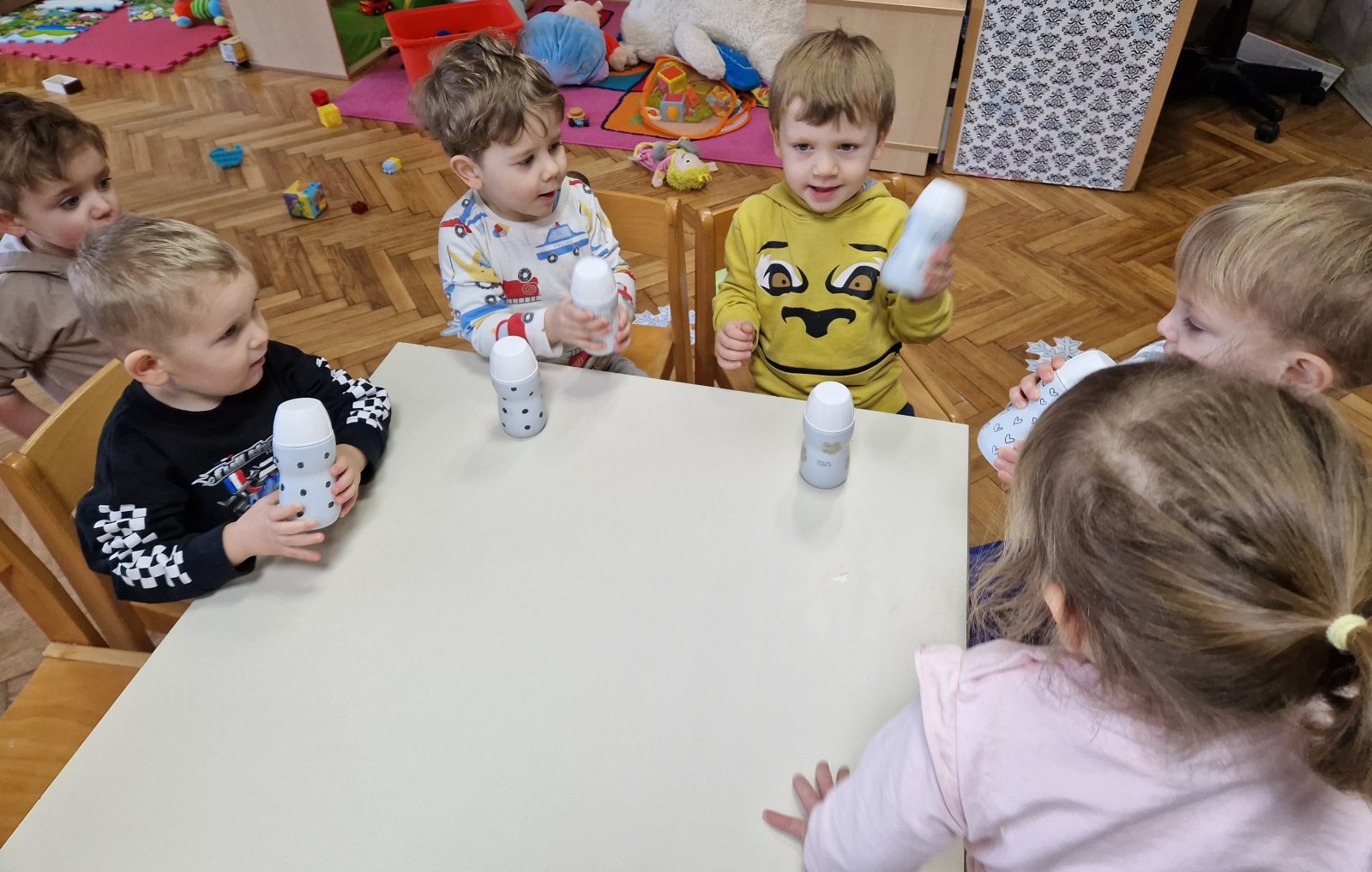 Proteklog tjedna Zvjezdice su bile vrlo zaposlene raznovrsnim istraživačkim aktivnostima. Velik interes skupine bio je za potragom za skrivenim predmetima u sobi. Taktilna staza obilovala je mnoštvom različitih materijala i tekstura. Likovna aktivnost rada sa tehnikom flomastera i vode djeci je bila vrlo privlačna i svi su se sa zanimanjem okušali. Aktivnost punjenja i manipulacije izrađenim šuškalicama također je zaokupila velik dio djece. Izrađene šuškalice pretvorili smo u zvučni memory. Taktilne vrećice također su zaokupljale pažnju djece te su dugotrajnom manipulacijom istraživali tekućine.