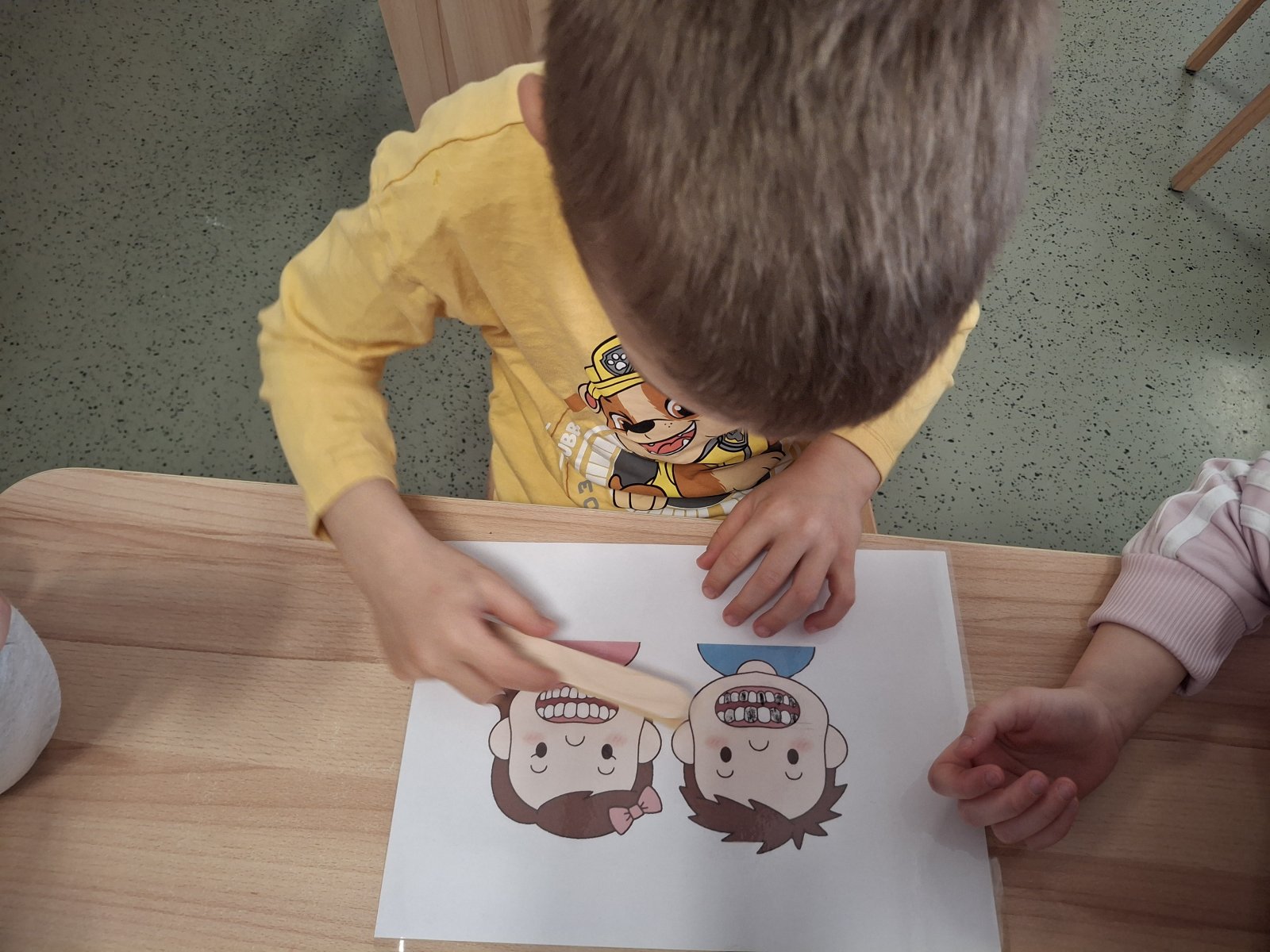 Važnost oralne higijene zubi česta je tema naših predškolaca, a posebno sada kada se rade zubne putovnice prije upisa u školu. Istraživačko spoznajnom aktivnošću prigodno smo osvijestili važnost oralnog zdravlja od najranije dobi. Nakon pročitane slikovnice „Dobivam trajne zube“ i poznate „Gric i Grec“, prisjetili smo se što je sve važno da bi naši zubi bili zdravi. Razvrstavale su se namirnice koje trebamo konzumirati da bi zubi bili jaki, bijeli i zdravi, a prisjetili se i onih namirnica koje rade probleme zubićima. Istraživali smo kako se koji zubi zovu, koliko traju, što su mliječni, a koji su to trajni zubi. U suradnji s roditeljima djeca su na današnji dan donijela svoje četkice i paste za zube kako bi prezentirali pravilno pranje zubi i kako ni slučajno više nikada ne bi ujutro i navečer zaboravili oprati zube. Vrlo su se vješto i pravilno prali zubići, djeca su pokazala veliki interes za ispravno pranje te jedni druge poticali i potvrđivali svoju sposobnost i vještinu pranja. Kada smo spoznali i slikovno prikazali dobre i loše bakterije stanuju u ustima, zanimanje za obveznu brigu o zubićima postalo je još veće. A da budemo sigurni da sve dobro radimo dogovorili smo posjetu našem stomatologu koji će pregledati zubiće i koji će djeci na neposredan način ukazati na bitne stvari u očuvanju oralnog zdravlja.