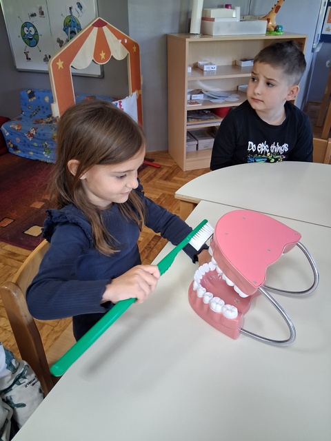 Upravo zbog toga u posjet nam je došla vrtićka zdravstvena voditeljica Sanja Koluder koja je kroz edukativnu prezentaciju i nadzirano četkanje zubi, djecu podsjetila o pravilnoj higijeni, važnosti zdrave prehrane i redovitim posjetima stomatologu, čime se sprječava nastanak karijesa.