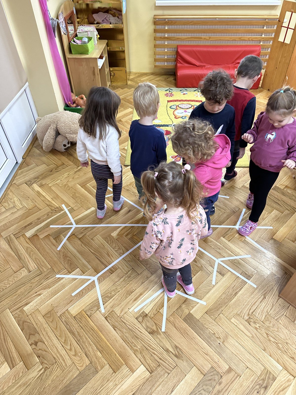 Prošlog tjedna tema su nam bile pahuljice, te su tako Točkice istraživale i učile sve o pahuljicama. U toplini svoje sobe igrali smo se i tako učili putem raznovrsnih didaktičkih igara vezanih uz temu pahuljica, pjevali pjesmicu „Padaj, padaj snježiću“ i naučili stihove „Pahuljica“. Razvijali smo grubu i finu motoriku, maštu, kreativnost te su djeca kroz igru imala priliku ponešto i naučiti. Tako smo izrađivali pahuljice koristeći šećer i ljepilo te smo izrađivali pahuljice pomoću tempere i štapića.
