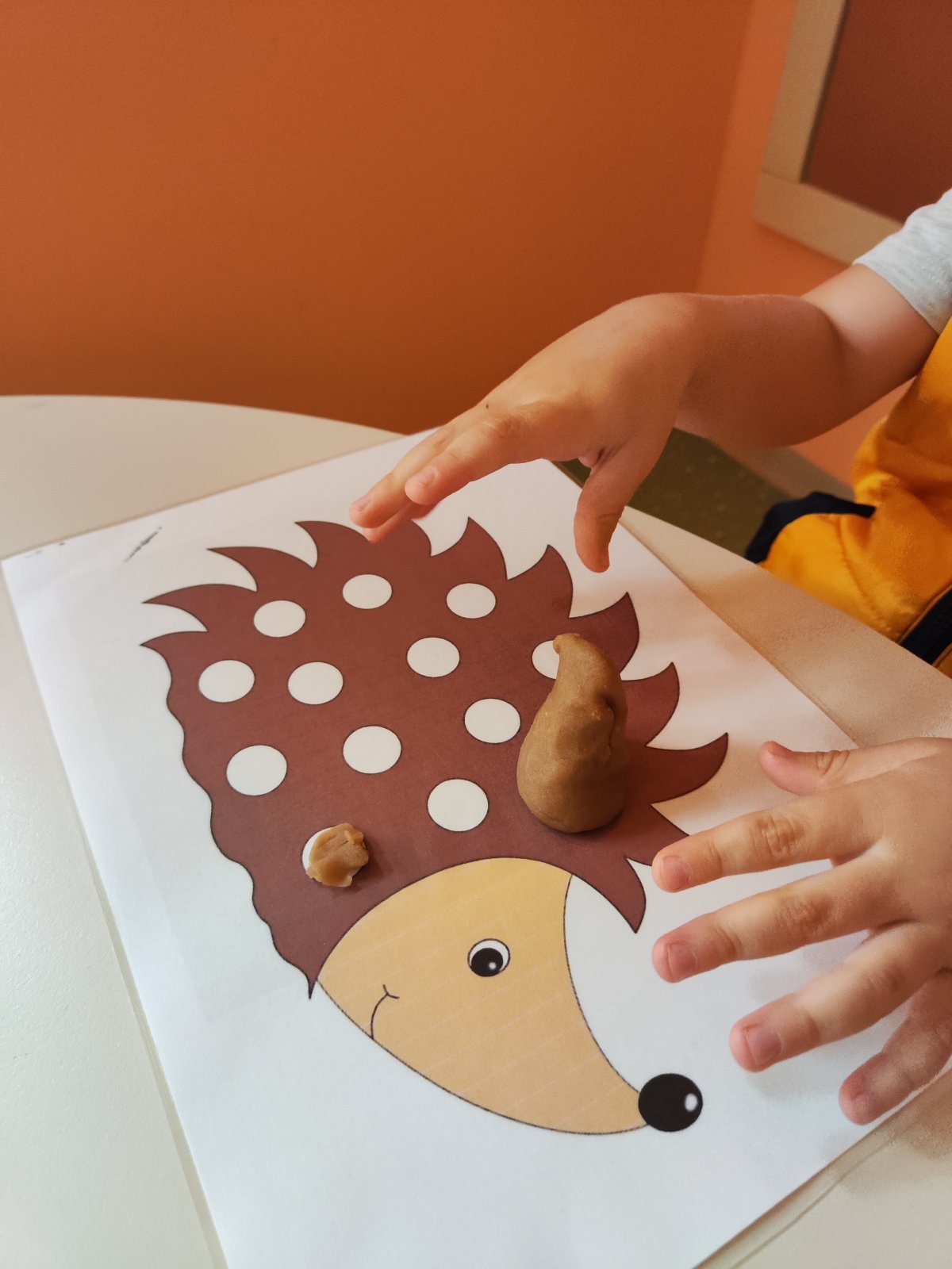 Na plastificiranom predlošku ježa, kapaljkom i obojanom vodom ispunjavali smo praznine, ili izrađivali bodlje od plastelina.
