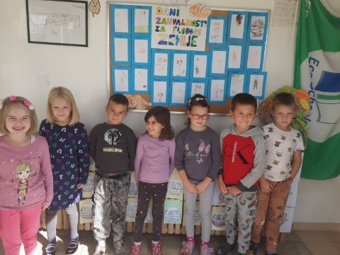 U našem vrtiću se svake godine tijekom mjeseca listopada obilježavaju “Dani kruha i zahvalnosti za plodove zemlje”. Upoznali smo djecu s nastajanjem kruha, raznim vrstama koje postoje, približili im žetvene običaje i ukazali na važnost zdrave prehrane, a djeca su, uz sve navedeno, razvijala spretnost i kreativnost te finu motoriku kroz miješenje i oblikovanje tijesta. Izradili smo svoj kruh i muffine kojima smo probudili sva dječja osjetila, posjetili pekaru “Kalinić”-u kojoj smo vidjeli raznovrsne pekarske proizvode te kroz posjet povezali ono što čujemo i učimo u vrtiću sa stvarnim situacijama iz života, crtali pekara, kruh, istraživali ulogu mlina..Formirali smo centar „pekara” u kojem su se djeca mogla poistovjetiti s zanimanjem pekara uz pripremu kruha, pizze te raznih pekarskih proizvoda. Djeca su sa roditeljima kod svojih kuća pripremala svoje omiljene pekarske proizvode. Pjevali smo pjesmicu: “Pekar” te naučili stihove zahvale :„Kruh moj, blagoslov je Bože tvoj“!
