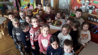 Adventskim selom ušli smo u vrijeme adventa. Na našemu selu stoje kućice koje su djeca oslikala. Svaki dan jedno dijete otvara svoju adventsku kućicu i zajedničkim snagama djeca obavljaju dnevni zadatak. Kućicu za uspomenu nosi kući. Svaki ponedjeljak uz adventsku pjesmu Visom leteć pali se svijeća na adventskom vijencu. 04.12. spominjemo se Sv. Barbare. Na taj dan djeca donose grančice jabuke ili trešnje koja se stavlja u vodu i te grane do Božića procvjetaju najavljujući rođenje djeteta. Vazu smo ukrasili i postavili kraj adventskog vijenca. Ugostili smo i mamu Dudaš Nike koja je s djecom izradili ukrase za bor kojima ćemo ukrasiti bor na adventu u Peterancu. Prigodno smo ukrasili i unutarnji dio vrtića kako bi nam ugođaj ovih blagdana bio što ljepši.