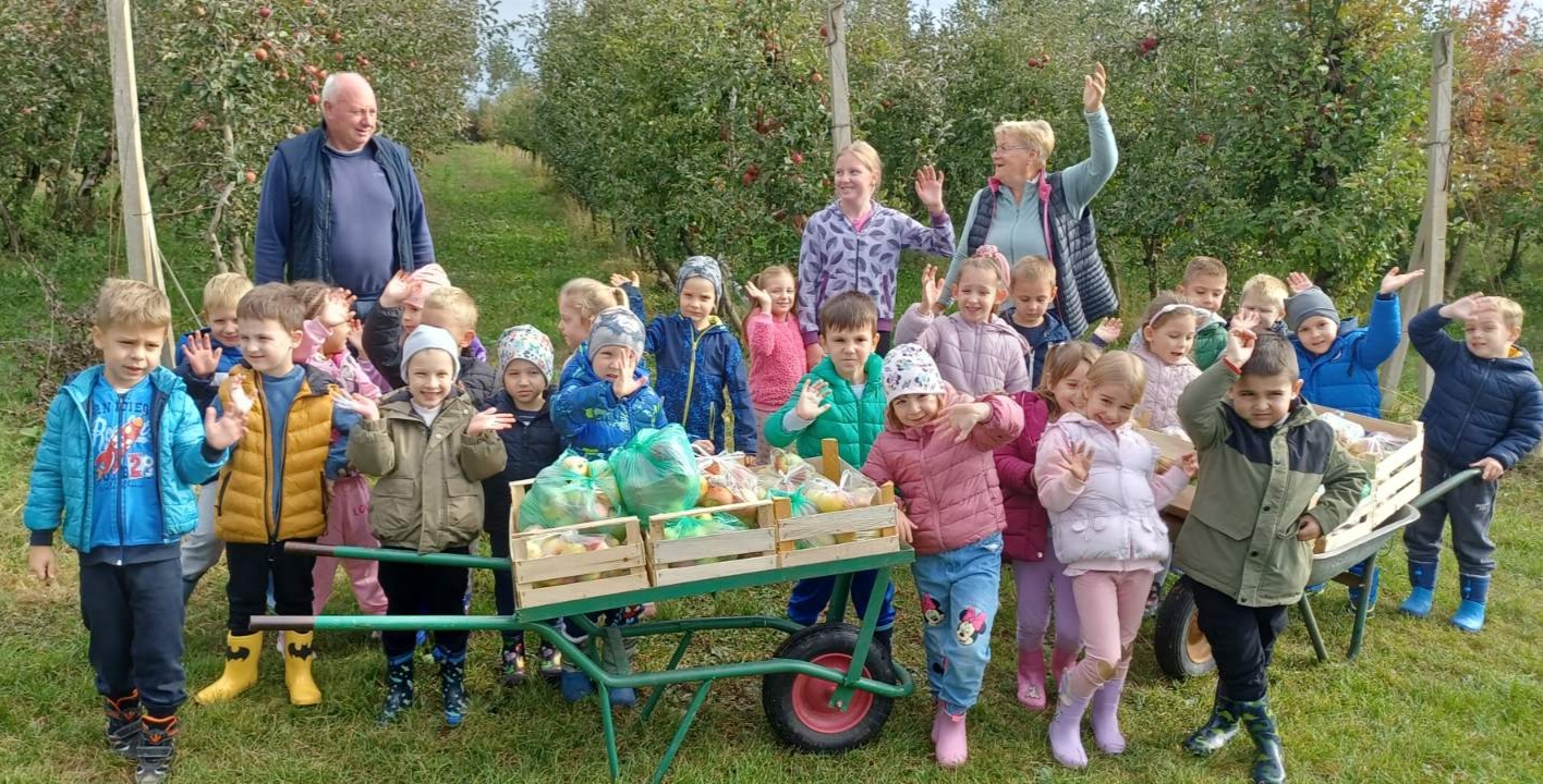 U četvrtak 9. listopada.2025. Ribice su autobusom krenule put prema voćnjaku. Tamo nas je dočekala Ingina baka, a kasnije joj se pridružio djed i Ingina seka. Za početak djeca su se okrijepila prirodnim sokom od jabuka, kolačićima i grickalicama. Nakon okrijepe svi smo zajedno krenuli u razgledavanje voćnjaka. Baka nam je opisivala voćnjak. Vrijedne ručice naših Ribica krenule su u berbu jabuka. Djeca su veselo ubirala plodove jabuka, trčkarala voćnjakom te uživala u konzumiranju jabuka. Djed je djeci pojasnio kako nastaje plod jabuke, što mu je sve potrebno da naraste, te je nabrojio koje sve vrste jabuka rastu u voćnjaku.