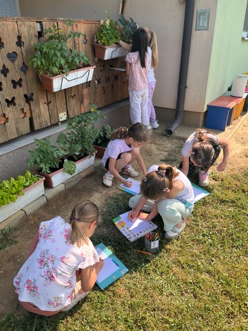 Sve ono što su djeca u suradnji s roditeljima donijeli u vrtić nedavno i posadili u vrtu sada su već velike biljke koje će uskoro dati ploda. Svakodnevno samo pričali o povrću i klasifikaciji na voće i povrće kako bi znali tko što kamo spada. Na YouTube smo pogledali filmić o povrću, a nacrtali smo ga i za pano.