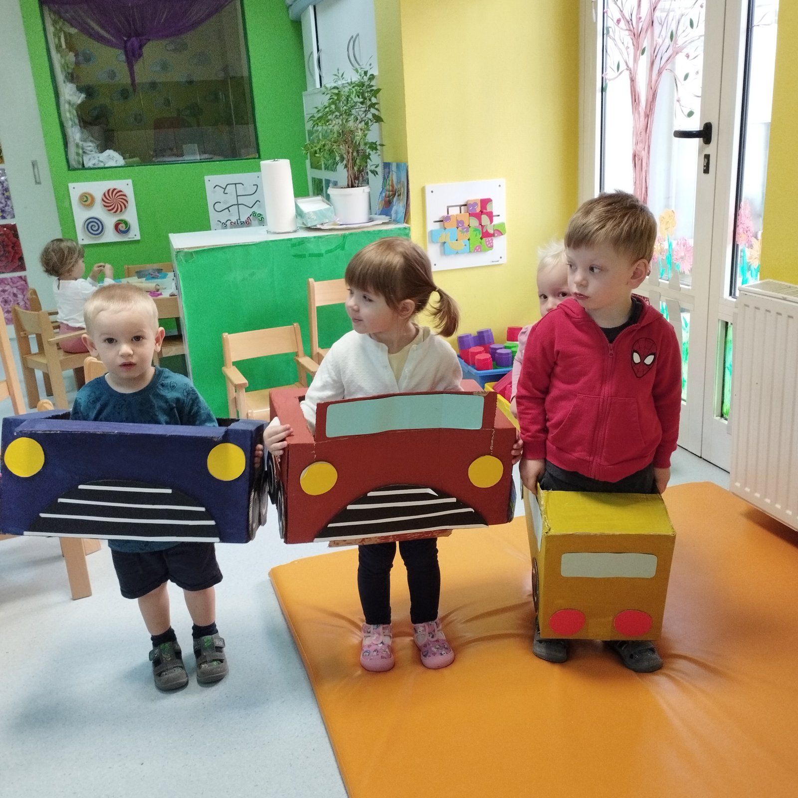 Djeca su izrađivala prijevozna sredstva od pedagoški neoblikovanog materijala, bojali su kartonske kutije akrilnim bojama i izradili smo aute i autobus koji nam služe u svakodnevnoj igri.
