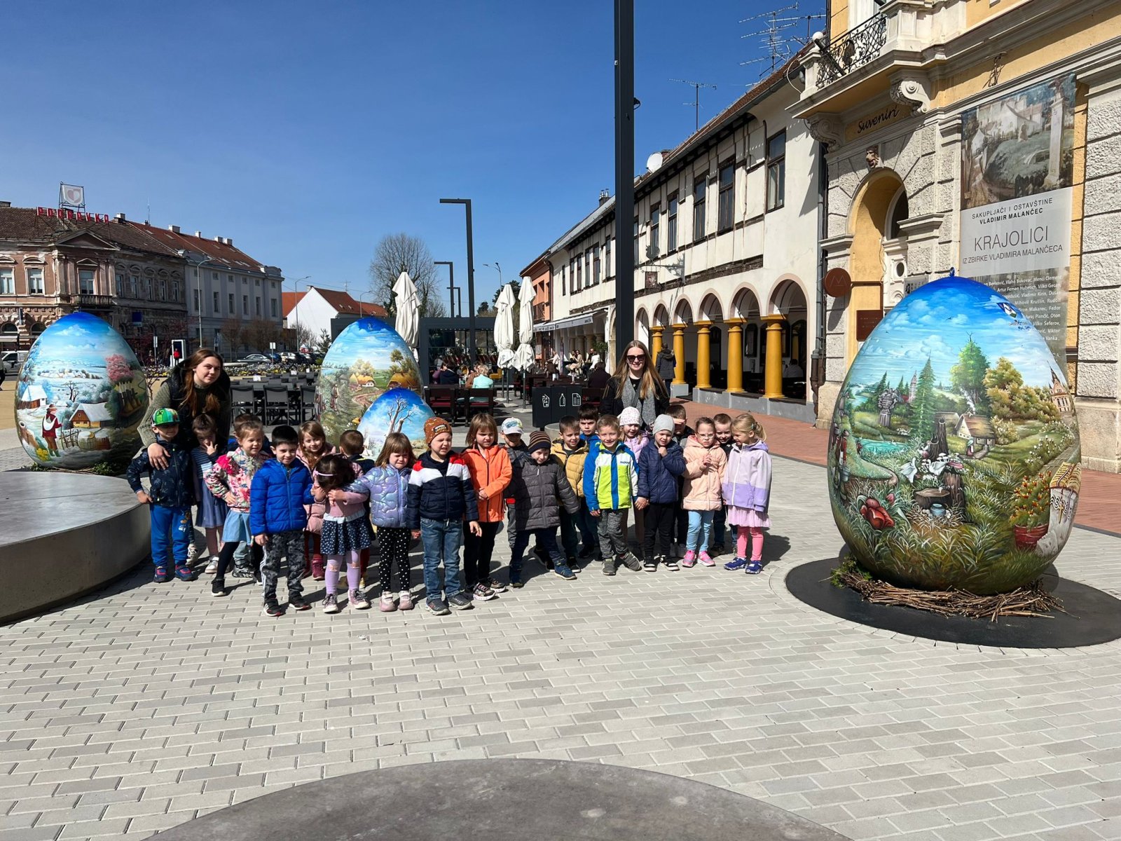 U tjednu koji je iza nas bili smo posvećeni Uskrsu. Bojali smo papirnata jaja, lijepili kolaž, crtali svoja jaja te ih bojali temperama. No, Uskrs nikako ne bi mogao proći bez čestitka, koje su djeca radila s veseljem. Bili smo posvećeni i senzoričkim igrama hranjenje pilića te sakupljanje jaja. Grupne aktivnosti smo provodili u igri, istraživanju i stvaranju, te promatranju i slušanju. Promatrali smo fotografije peradi čija jaja imamo. Djeca su vješto imenovala perad, a lako su i prepoznala njihova jaja. Jaje noja svima nam se najviše svidjelo. No kako pretvoriti jaja u pisanice? U tome nam je pomogla priča “Jaje koje nije znalo koju boju voli“. Nastavno tom slušali smo priču, popraćenu lutkicama, “Priča o Uskrsnom zecu“. Nakon toga tražili smo slatkiše i zasladili brk. Uskrsni tjedan nikako ne bi mogao proći bez šetnje po centru grada i promatranju pisanica. Za kraj tjedna pogledali smo crtani film “Petar i čarobno jaje” koji je naše “Pčelice” stvarno potaknuo na razmišljanje između dobrog i lošeg.