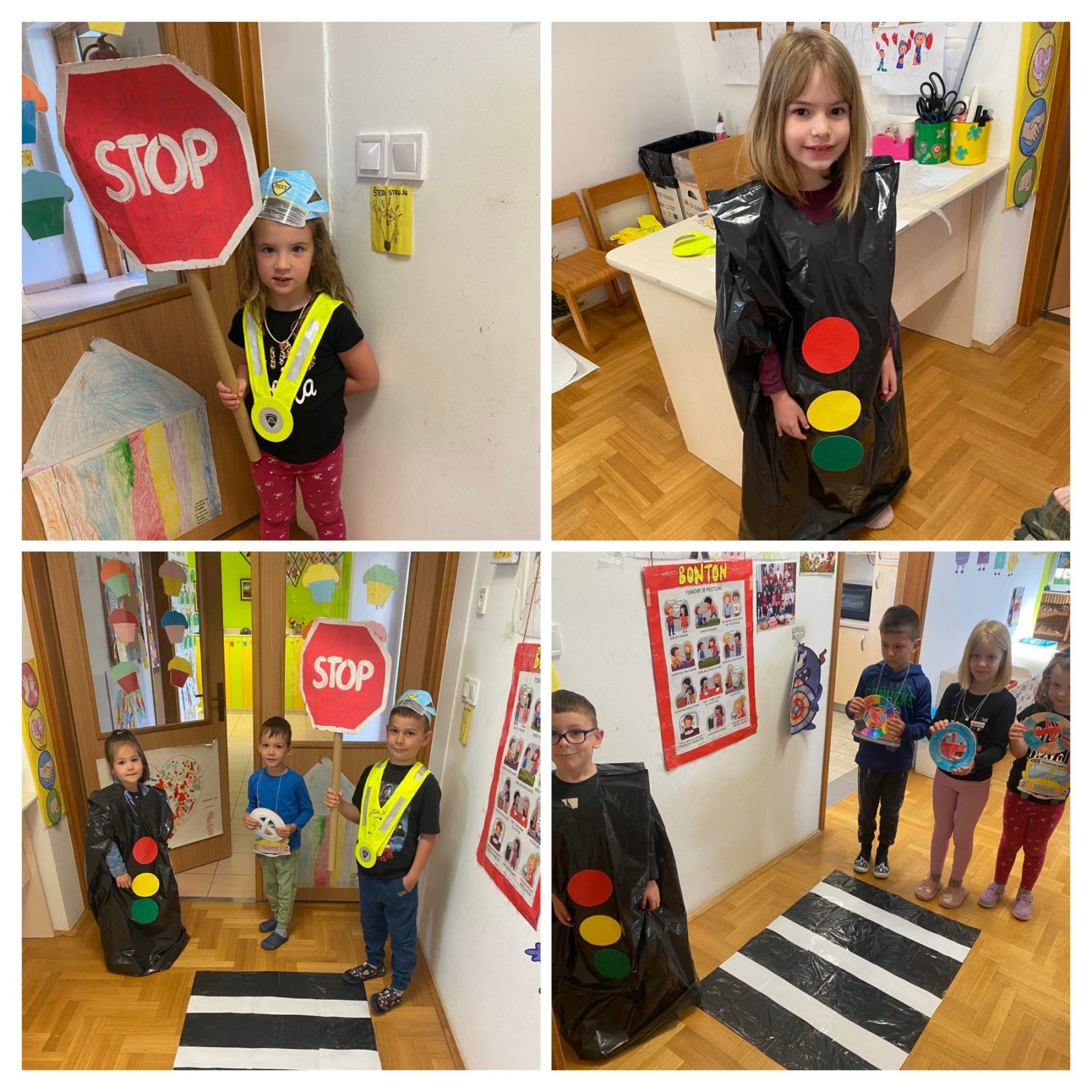Kreativnost djece došla je do punog izražaja u oslikavanju i izradi prometnih znakova koje su naučili imenovati, izradi vozila i maketa od pedagoški neoblikovanog materijala.