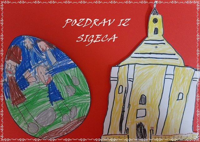 Kroz svoje viđenje, djeca su se likovno izražavala na temu Crkve i Jajeta s Gruntovčanima (simbolika našeg parka). Crteže smo iskoristile za izradu razglednice „Pozdrav iz Sigeca“ kojom ćemo u ime vrtića, nama dragim prijateljima i suradnicima čestitati nadolazeće blagdane.