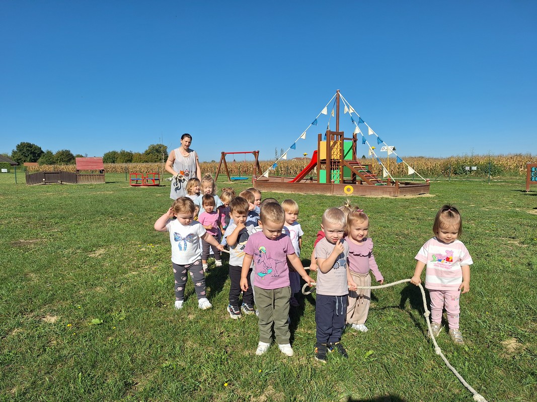 🌞 Posebno smo ponosni što smo krenuli u prve šetnje uz uže izvan vrtićkog dvorišta. Djeca su veselo koračala, učila pratiti ritam skupine i pritom sigurno istraživala okolinu. To je za njih važan korak u stjecanju samostalnosti.