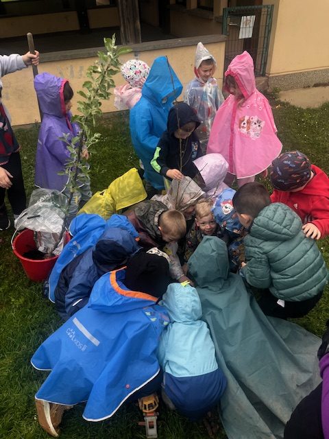 Kako bi se drveće lakše primilo, djeca su naučila kako pravilno zalijevati biljke i dogovorili smo se da će u narednim tjednima svaka skupina imati svoj „mali zadatak“ — paziti na jabuku i breskvu, pratiti njihove promjene i pomagati u zalijevanju.