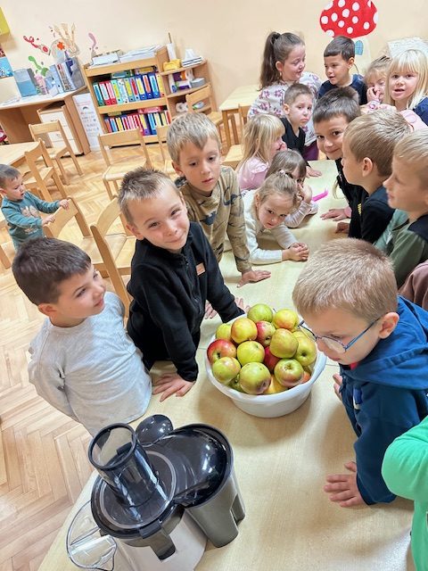 Ovoga tjedna provodili smo posebno zanimljivu i ukusnu aktivnost – izradu domaćeg soka od jabuka. Djeca su imala priliku iz prve ruke vidjeti i sudjelovati u procesu nastanka prirodnog soka, od jabuke do čaše.