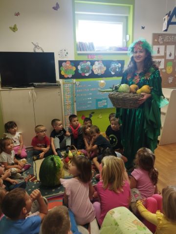 Jesen se polako došuljala i kod “Leptirića”, sa znatiželjom smo je dočekali, istraživali što nam sve ona donosi sa sobom i zašto je upravo jesen najbogatije godišnje doba. Jesen smo pozdravili raznim pjesmicama: “Tiho, tiho pada list za listom žut”, “Muhara”, “Kesten” ,” Veliki bratac Ivo i mala Marica”. U suradnji s roditeljima sakupili smo različite jesenske plodove (bundeve, tikvice, kukuruz, kestene, žireve, orahe, jabuke, kruške, grožđe..) formirali smo  jesenski kutić u koji smo postavili izrađene jesenske košare. Istraživali smo oblik i teksturu plodova, prepoznavali ih i imenovali, posjetila nas je vila “Jesenka” s kojom smo plesali te nam je pomogla kod prepoznavanja plodova koje je donijela sa sobom. Djeca su izradila Jesensku kutiju u koju smo stavili nekoliko jesenskih plodova te dali djetetu vremena da prouči sadržaj, a onda smo jedan plod maknuli i tražili od djeteta da imenuje “nestali” plod, također smo se okušali u prepoznavanju i imenovanju ploda na osnovu opipa. Izradili smo svoje 3 d drvo “Četiri godišnja doba”, okušali se u crtanju lišća služeći se stvarnim poticajem, lijepili kolaž papir na predložak jabuka, kruška…Kroz ponuđene razne stolno manipulativne igre usvajali smo predmatematičke vještine( pridruživanje količine broju, nastavi niz, prostorne odnose..), grafomotoriku, strpljivo čekanje na red te poštovanje pravila igre.