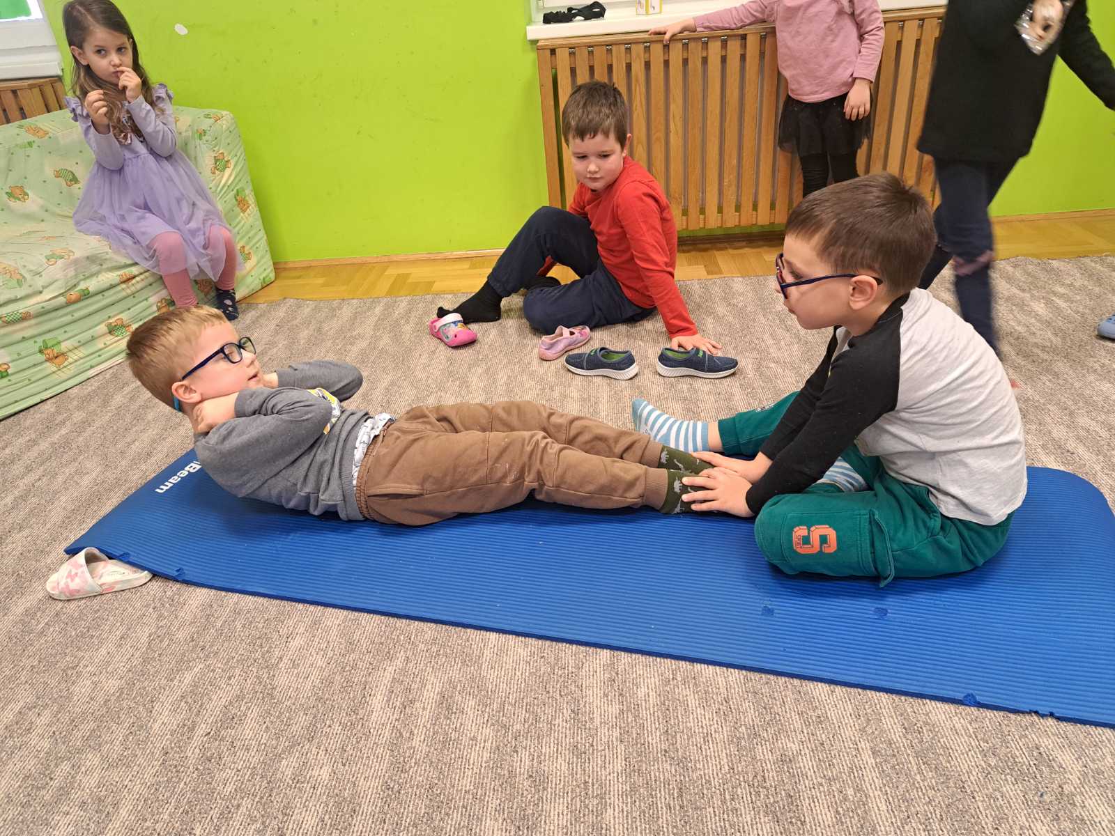 Ponovno smo oživjeli već pomalo zaboravljene igre poput nošenja jaja (u našem slučaju krede) u žlici, igre školice i gumi – gumi. Kredama smo na našem dvorištu iscrtali stazu za hodanje, provlačili se ispod “paukove” mreže, hodali po “gredi”, redovito izvodili vježbe istezanja i još mnoge druge.