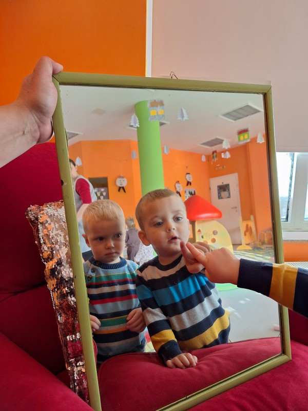 Na veliki papir na podu iscrtavali smo obrise tijela djece koje su oni kasnije bojali pastelama. Gledali su se u ogledalo, radili različite pokrete i pokazivali dijelove tijela te tako postajali svjesni sami sebe.
