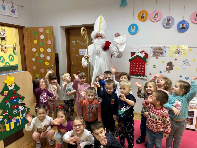 Blagdan Svetog Nikole svakom je djetetu jedan od najdražih blagdana u godini. I naše“ Točkice“ s velikom radošću očekivale su njegov dolazak. Kroz cijeli tjedan vrtićem su se orile pjesmice „Ručice nam Niko daj“, “Sveti Niko svijetom šeta“… Djeca su uživala u bojanju i ukrašavanju čizmica, izradi Svetog Nikole, bojanju prigodnih bojanki. Bili smo jako dobri i poslušni i za nagradu nas je Sveti Nikola i nagradio lijepim poklonima. Obećao im je da će ih posjetiti i sljedeće godine ako budu dobri i poslušni kao i dosada.