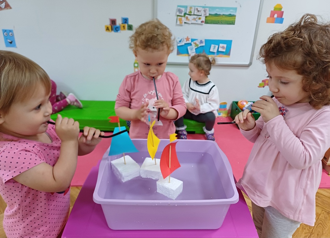 Kako bi uplovili u vodeni svijet, djeca su se iskušala u aktivnosti utrke brodova na vodi. Pomoću slamke puhala su u brodove i pokušala stići do cilja. Ipak, od brodova zanimljivije je bilo puhati u prijatelje.