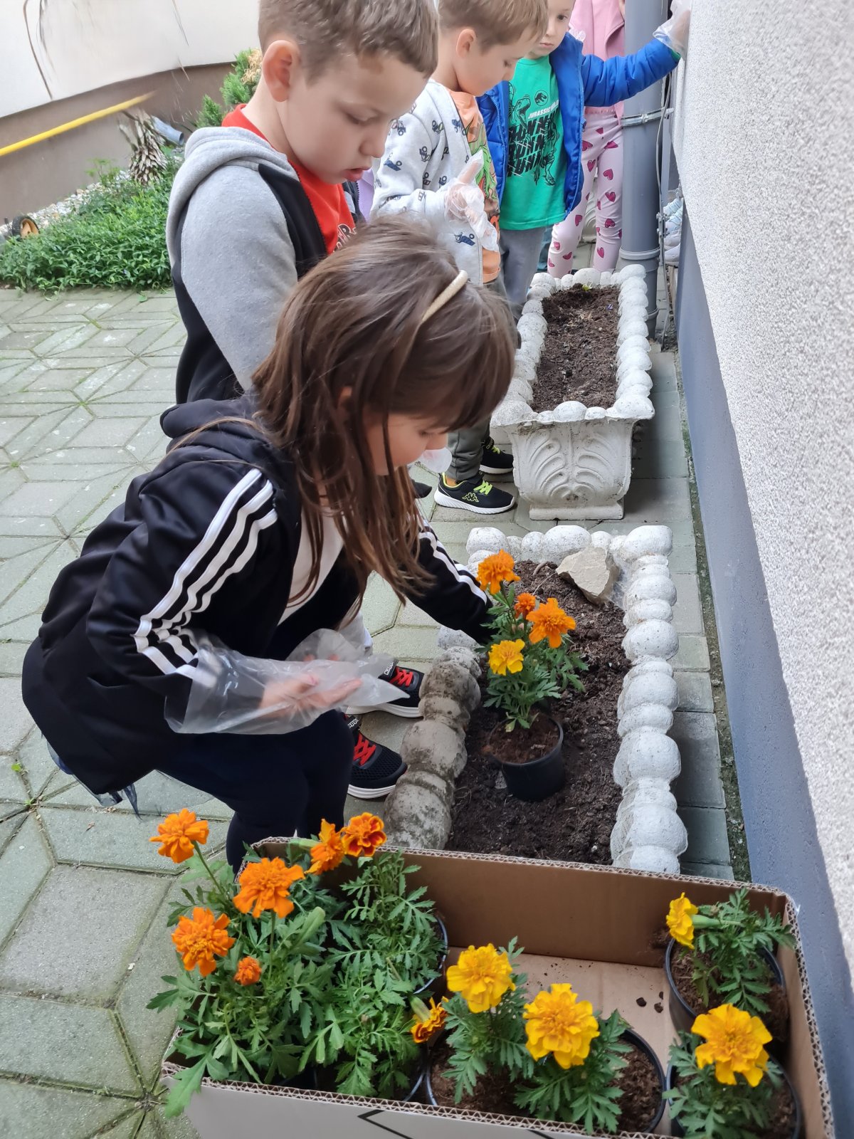 Vrijedne Kapljice pripremile su cvjetnjake za sadnju, pažljivo odabrale koji cvijet žele i mjesto gdje će ga posaditi te je uz pomoć odgojiteljice svatko posadio svoj cvjetić.