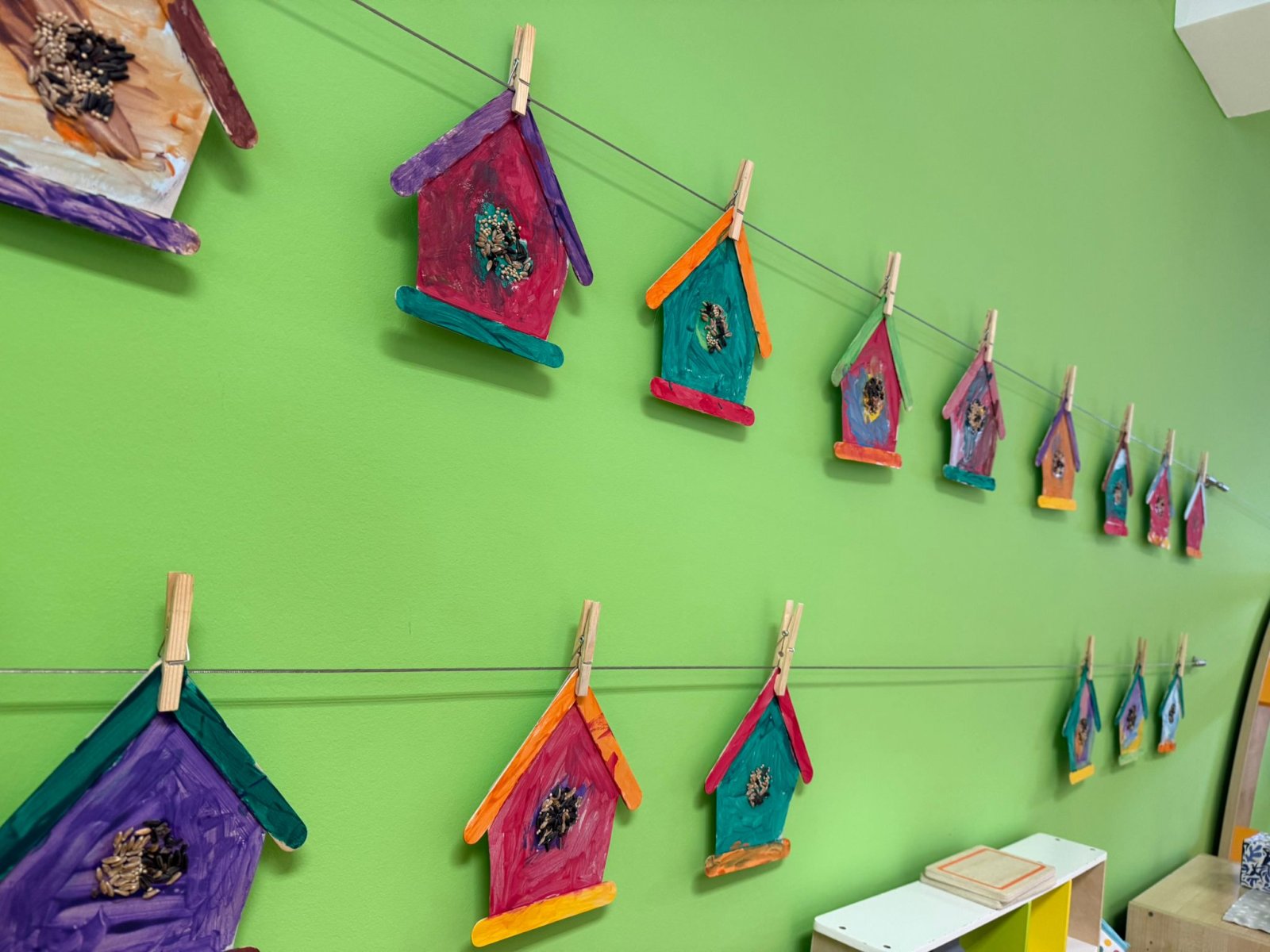 Potaknuti novim spoznajama, uključili smo se u raznolike aktivnosti: individualno bojenje ptica, crtanje pera, izradu kućica za ptice te hranilica kojima smo željeli pomoći ptičicama koje teže pronalaze hranu. Aktivnosti su bile osmišljene tako da potiču aktivno sudjelovanje i istraživački duh djece.